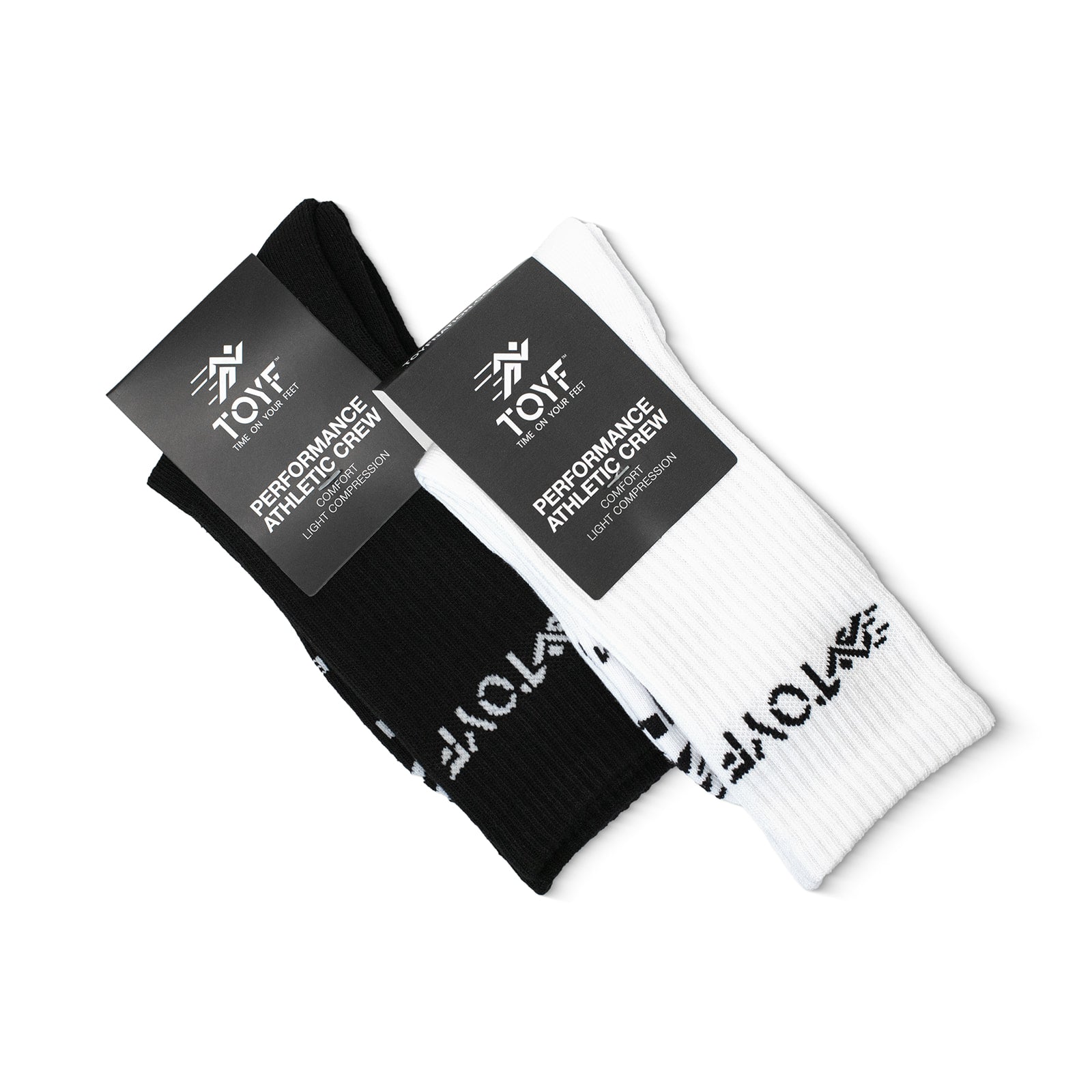 Achieve peak performance with TOYF's Athletic Performance Crew Sock. Born from years of innovation and tested through miles of running, intense weightlifting, and competitive sports like golf, tennis, football, and wrestling, these socks are the ultimate companion for your active lifestyle.